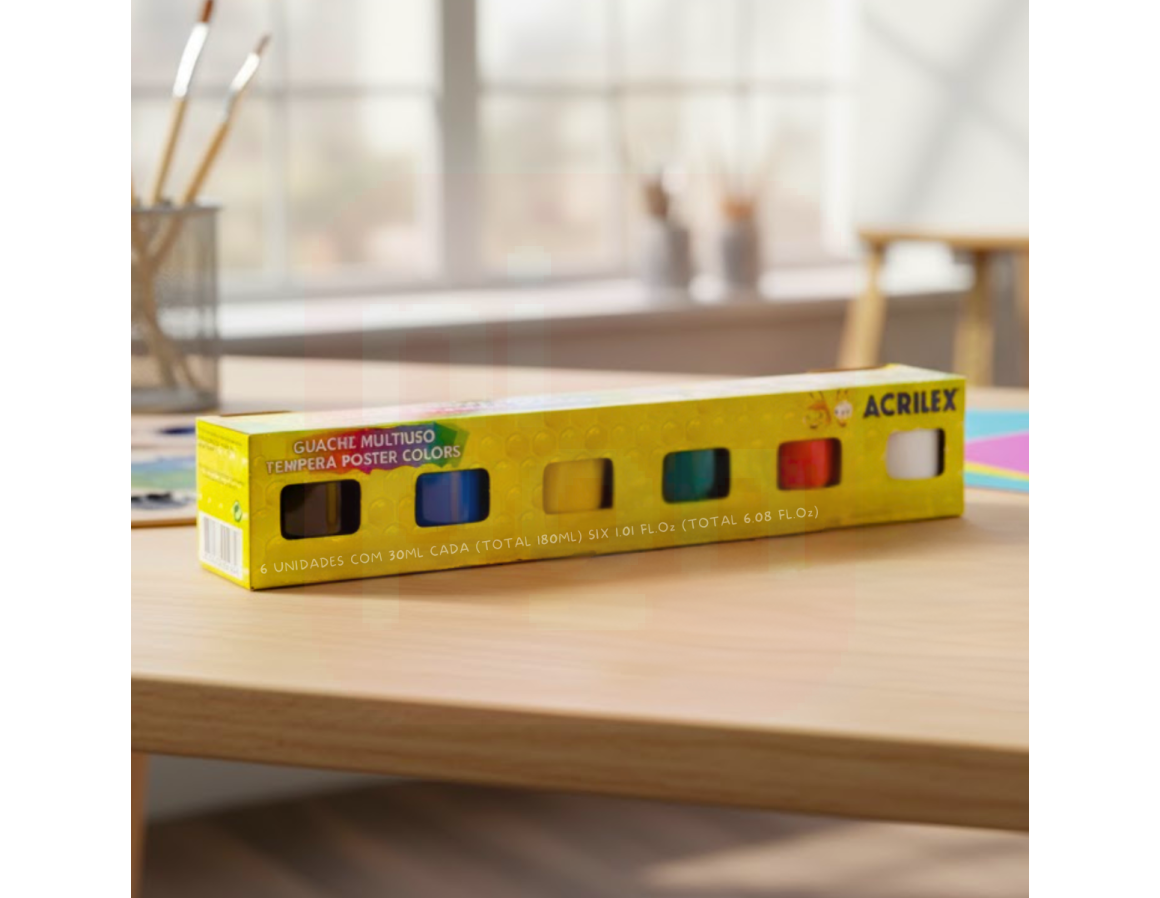 2. Tinta Guache Multiuso Têmpera Poster Colors 30ml com 6 Cores – Acrilex
